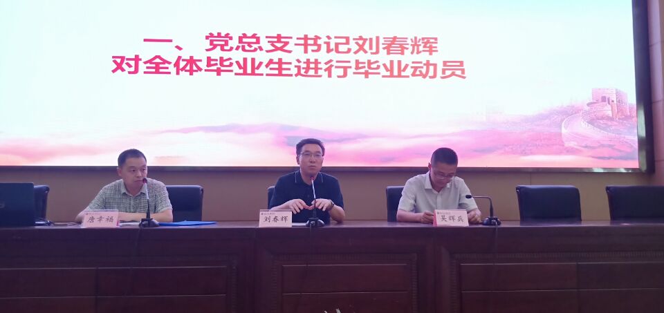 6月10日下午,金年会在学术报告厅A厅召开2019届毕业生教育与动员大会。党总支书记刘春辉、党总支副书记吴辉兵、学工办主任唐幸福出席,2019届毕业生参加会议。