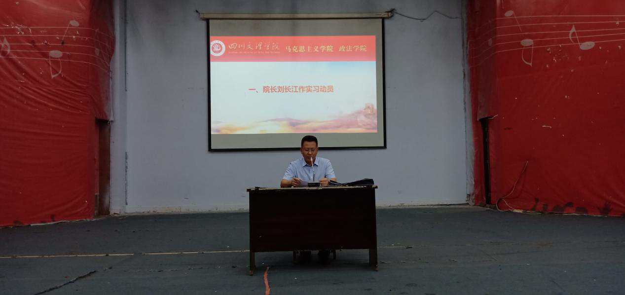 院长刘长江对2020届学生作实习动员,他阐释了实习的意义和作用,他说实习目的是使学生通过实习深入工作一线,了解社会,接触实际,获取行业实践的基本知识和能,培养学生理论联系实际的工作作风和发现问题、分析问题、解决问题的实际工作能力。他对学院2020届的实习工作进行部署和安排,对实习工作提出具体要求