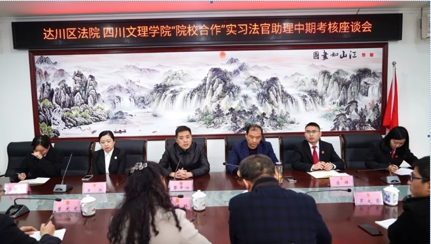 2018年11月8日上午,由王秀珍院长带队,刘春辉副院长、曾宪文副处长一行5人前往达川区人民法院开展毕业生中期实习检查工作,现场召开了 “院校合作实习法官助理中期考核座谈会”, 会议由李官恒副院长主持。