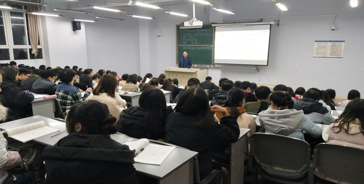 2018年11月19日晚7点,学校党委书记、教育部2013-2017环境科学与工程类专业教学指导委员会委员、国家城市污水处理及资源化工程技术研究中心专家委员会专家王成端教授在莲湖校区一教学楼511教室为教师教育学院2017级3/4/5班的本科生讲授了一堂题为“厚植生态文明,耕耘美丽中国”的形势与政策课。金年会jinnianhuicom、政法学院王秀珍院长、形势与政策教研室主任梁云老师、教师教育学院辅导员文娟老师一同聆听了王书记的授课。