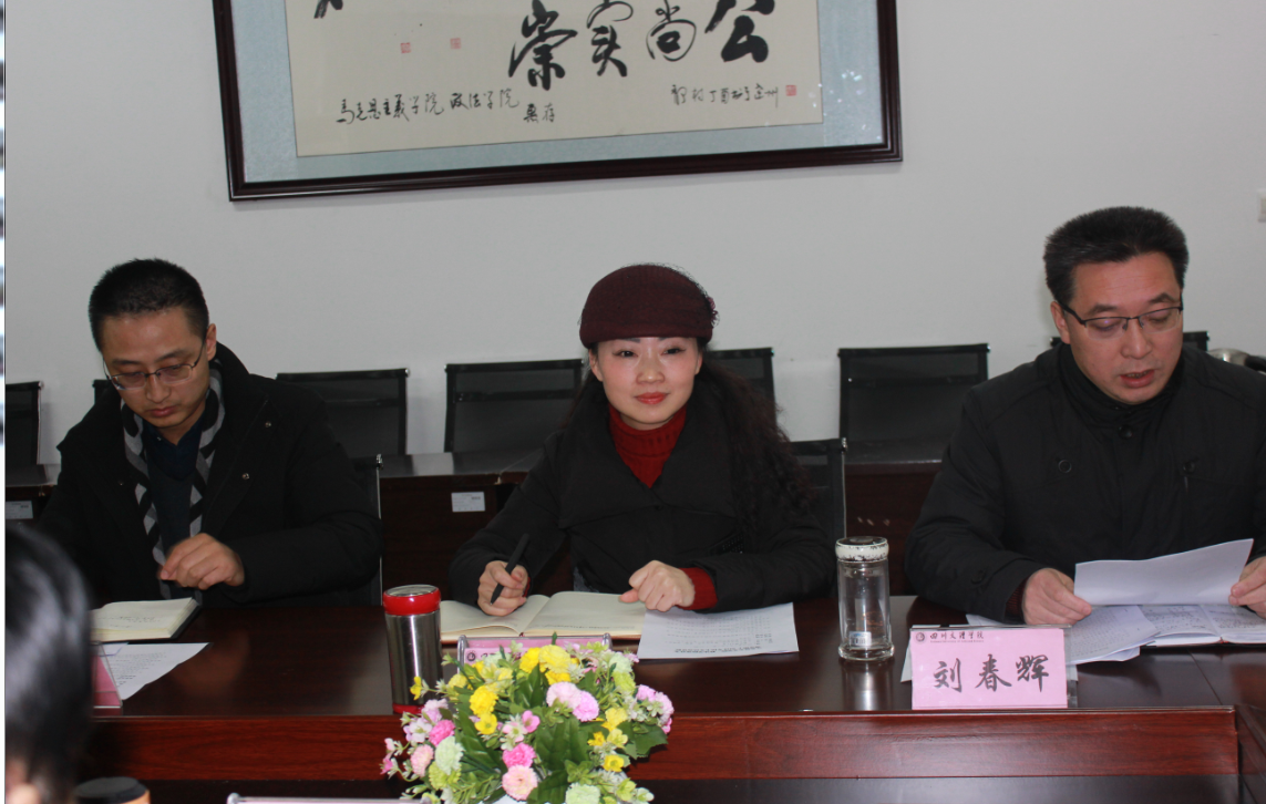 1月7日下午,金年会jinnianhuicom、政法学院党总支在一教楼611会议室召开领导班子2018年民主生活会。党委书记王成端、督导成员秦静莅会指导,班子成员王秀珍院长、吴辉兵副书记参加会议,党政办、学工办、教研室主任列席会议,总支书记刘春辉主持会议。