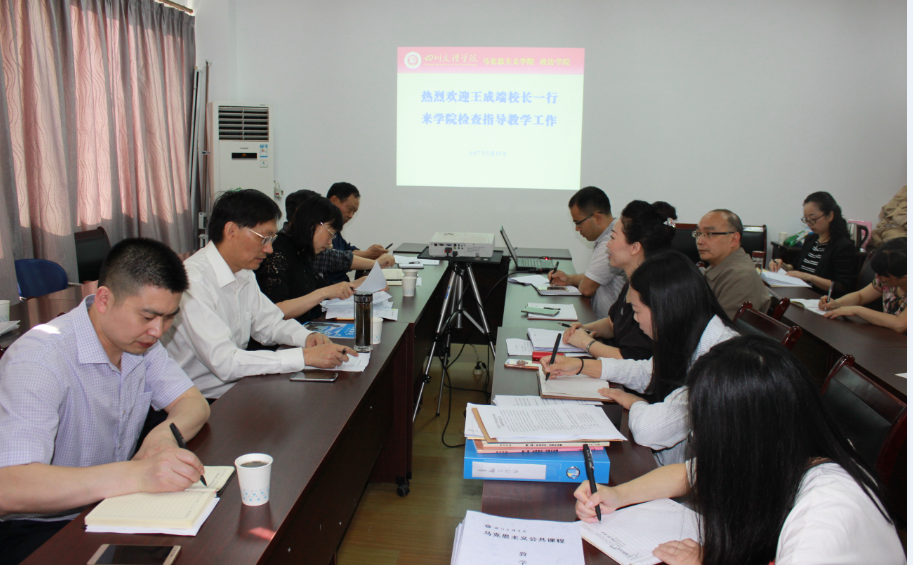 校长王成端肯定了两个学院合署后工作思路清晰、整合推进有序。对学院下一步工作提出三点要求:一是要加强学习,与时俱进。要不断深化对习近平总书记系列重要讲话精神的学习,认真贯彻落实全国、全省高校思想政治工作会精神,加强对党和国家最新方针政策的学习,跟上时代的步伐,主动将最新的理论知识传递给广大学生。二是要打造团队,加强学科建设。着力整合校内外一切资源,通过聘请名誉院长、确立学科带头人、专业带头人,打造高质量的教学科研团队。三是要深化改革,突出成效。改革成效要落地,过程要落实,不能空谈概念,要以问题、成果为导向。要走出去,深入开展调研,加强经验交流,早日实施思想政治理论课的专题式教学,进一步深化思想政治理论课“2+1”教学改革,围绕“1”的落实,不断丰富实践教学内容,提升教育教学质量。
