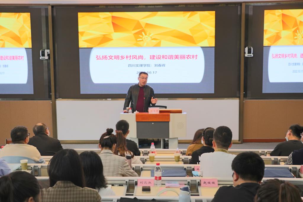 2022年17日下午,马克思主义学党委书记刘春辉为万源市“2022年新时代治蜀兴川优秀年轻干部递进培养班”作题为《弘扬文明乡村风尚,建设和谐美丽农村》专题讲座。
