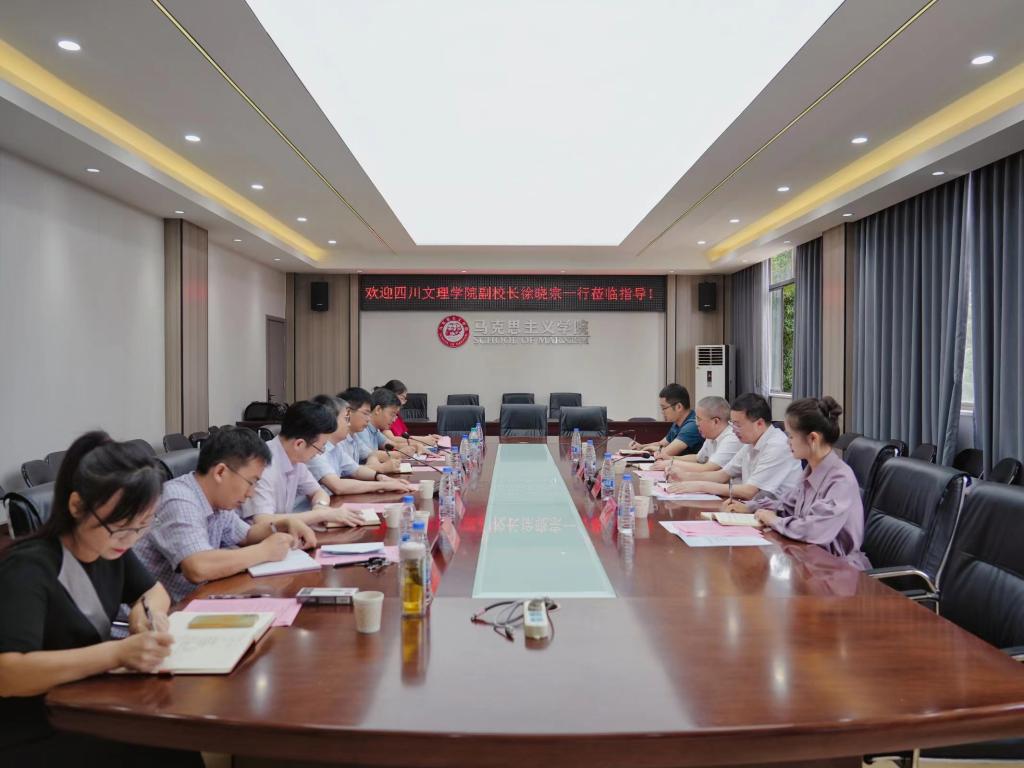 在赣南师范大学考察交流期间,徐晓宗介绍了金年会的发展概况、红色文化育人工作和马克思主义理论学科建设基本情况,并说明此行目的,表示希望通过调研,学习先进、推动发展,增进交流。赣南师范大学党委常委、副校长邱小云介绍了赣南师范大学的基本情况,从“大平台”支撑、“大项目”引领、“大成果”丰硕、“强团队”保障等方面介绍了赣南师范大学在推进马克思主义理论学科建设方面的先进经验。赣南师范大学金年会jinnianhuicom院长贺新春、党委副书记、纪委书记曾建国、副院长康安峰、刘国钰,中国共产党革命精神与文化资源研究中心执行主任钟小明,分享了学科科研、师资建设、思政课改革创新、人才培养、地方服务、红色文化育人工作等方面的经验做法。
