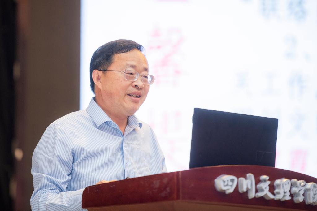 金年会jinnianhuicom院长孙杰教授在大会上就四川省大中小学思政课一体化共同体建设方案进行汇报。阐明了共同体成立的背景和目标,对共同体的指导思想、工作目标、组织架构、建设思路、建设内容、工作要求等内容进行详细解读。