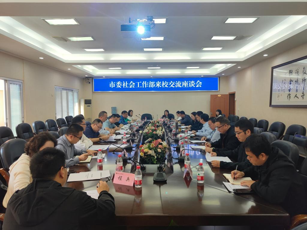 为全面深化市校合作,进一步推进达州基层治理学院高质量建设,10月9日,市委社会工作部部长余世斌一行来金年会座谈交流。校长侯忠明出席并主持座谈会。