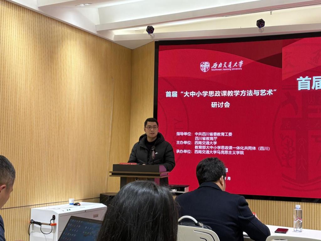 12月21日,由教育部大中小学一体化共同体(四川)、西南交通大学金年会jinnianhuicom主办的首届“大中小学思政课教学方法与艺术”研讨会在西南交通大学举行。教育部大中小学思政课一体化共同体相关省区(市)代表,大中小学思政一体化建设相关领导、专家、学者、大中小学思政课教师,四川省大中小学思政课一体化共同体代表,教育部大中小学思政课一体化共同体(四川)成员单位代表参加研讨会。学校党委宣传部副部长姜仕华、学院副院长何先成应邀参会交流。