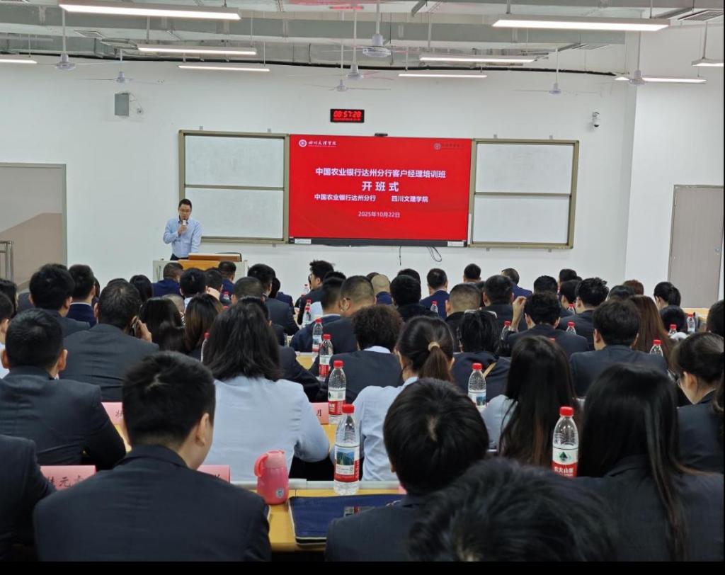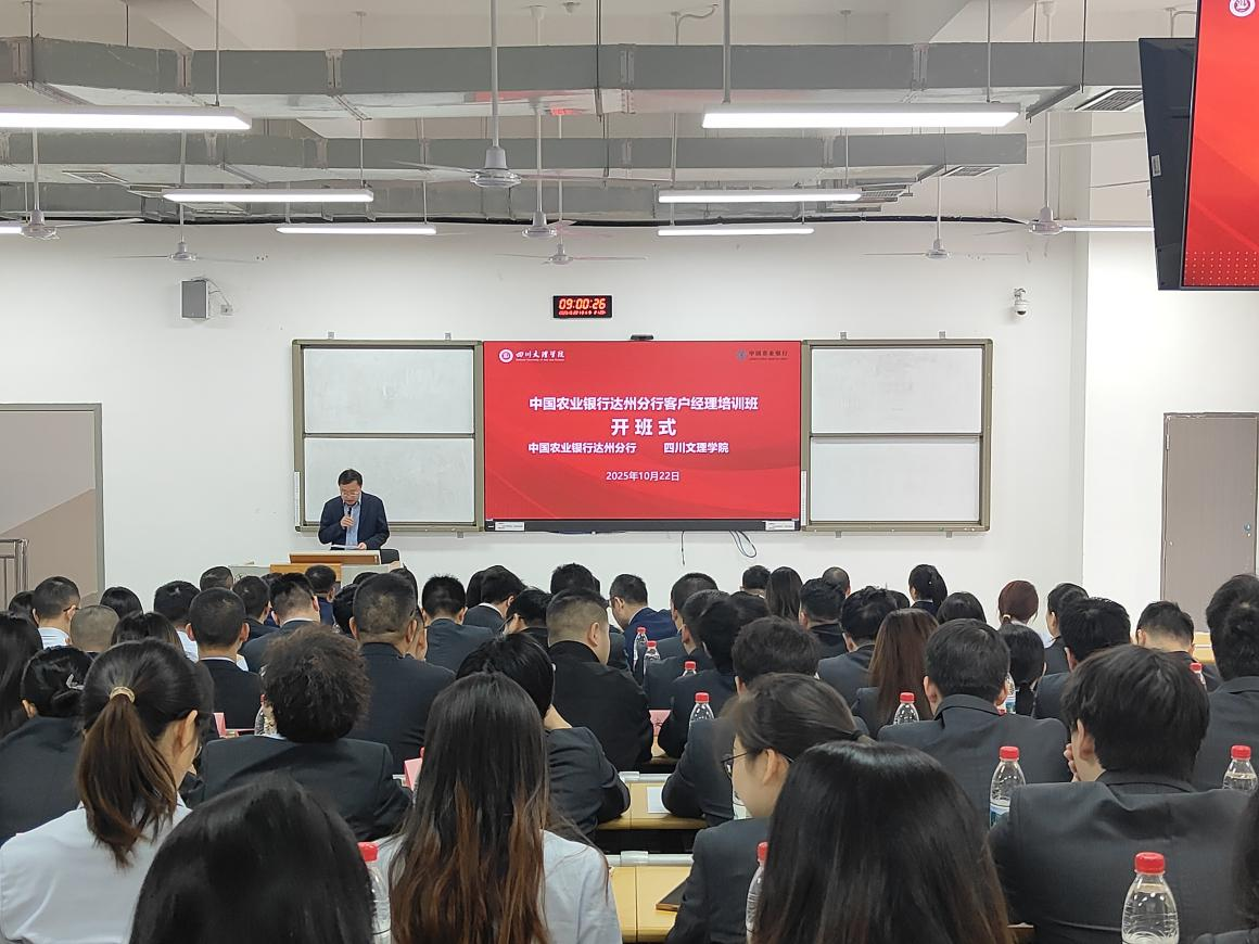 10月22日,“中国农业银行达州分行客户经理培训班”开班仪式在学校举行。此次培训班由中国农业银行达州分行主办,四川文理学院达州基层治理学院承办。四川文理学院金年会jinnianhuicom院长、达州基层治理学院副院长孙杰致辞。中国农业银行达州分行副行长冯洪波出席开班式。四川文理学院金年会jinnianhuicom副院长何先成主持开班式。