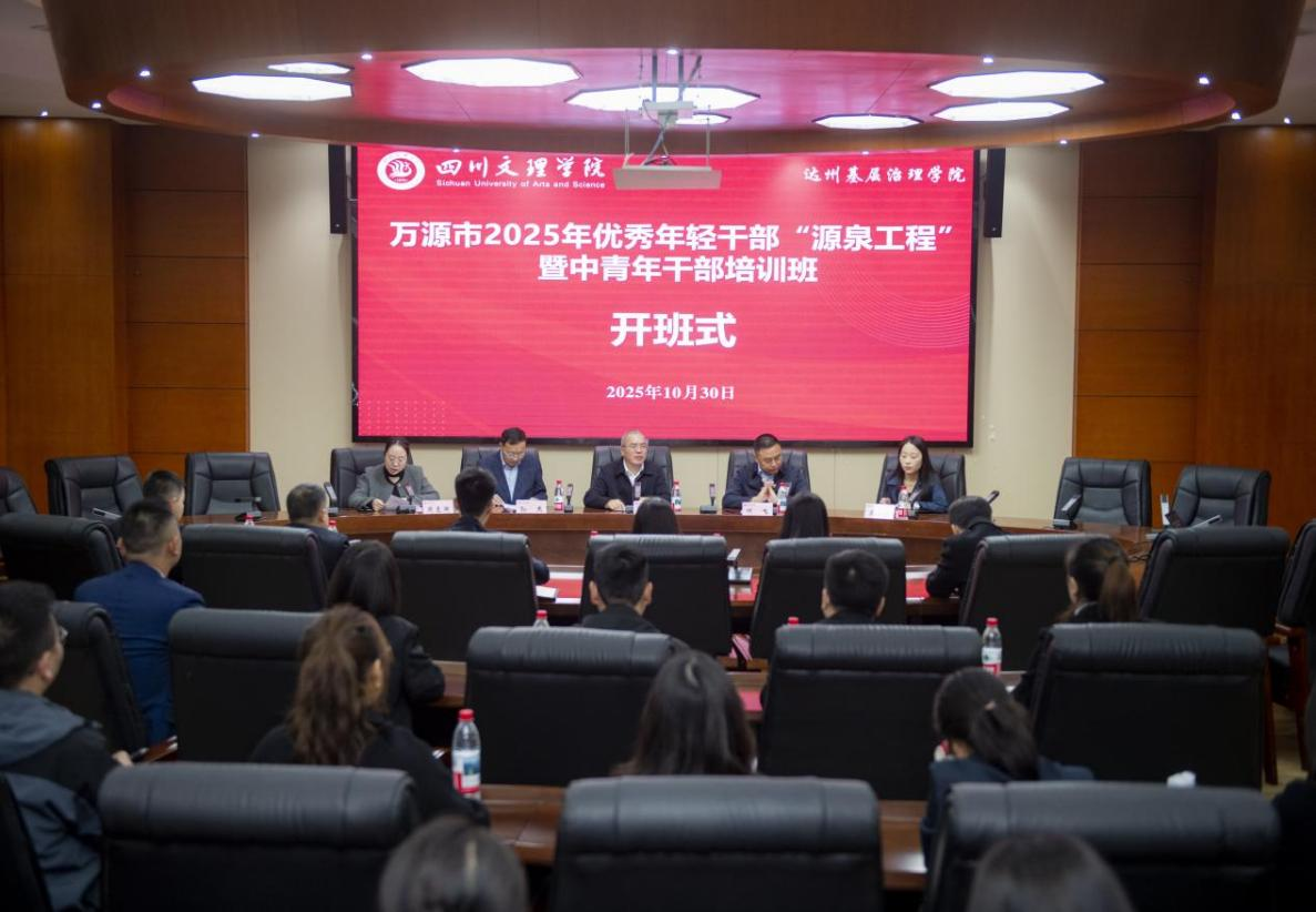 10月30日,“万源市2025年优秀年轻干部‘源泉工程’暨中青年干部培训班”开班仪式在学校举行。此次培训班由中共万源市委组织部主办,四川文理学院达州基层治理学院承办。四川文理学院党委副书记徐晓宗致辞。中共万源市委常委、组织部部长、党校(行政学校)校长何飞,中共万源市委组织部副部长、公务员局局长王先娥出席开班式。四川文理学院金年会jinnianhuicom院长、达州基层治理学院副院长孙杰参加开班式。四川文理学院金年会jinnianhuicom党委副书记、纪委书记周春滟主持开班式。
