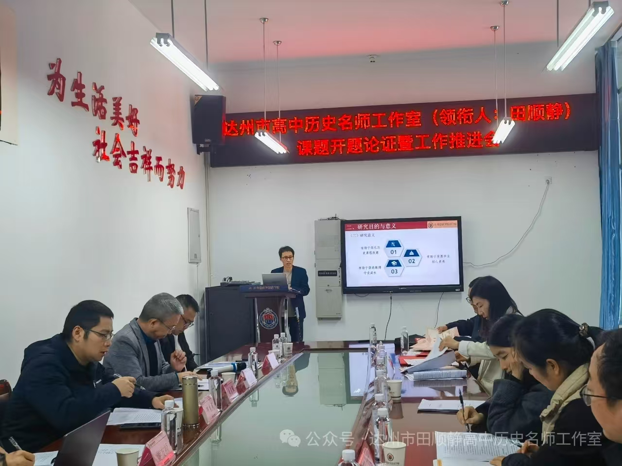 11月13日,达州市田顺静高中历史名师工作室课题开题论证暨工作推进会在达州嘉祥外国语学校顺利召开。学院副院长何先成教授受邀出席并担任专家组组长,与达州市教育科学研究所副所长、高级教师胡江,达州市电化教育与技术装备中心主任、正高级教师邓旭辉,四川省大竹中学正高级教师游友禄共同为《数智赋能高中历史跨学科主题学习实践研究》与《基于核心素养的高中历史主题教学实践研究——以〈国家制度与社会治理〉为例》两项市级高中历史课题提供专业论证指导,以实际行动为区域基础教育教研赋能。