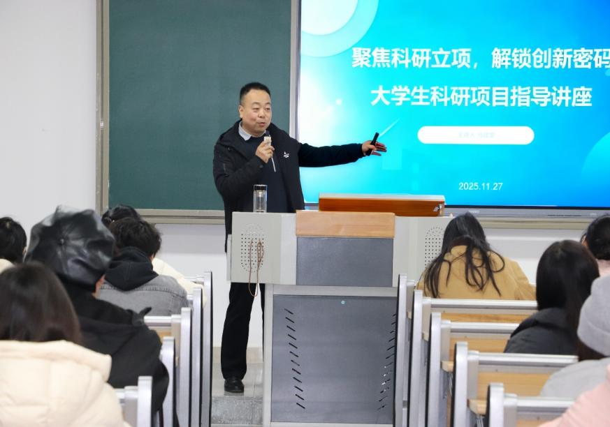为提升学生科研素养,激发创新思维,助力学子在学术道路上稳步前行, 11月27日下午,金年会jinnianhuicom组织开展以“聚焦科研立项,解锁创新密码”为主题的大学生科研项目素养讲座,本次讲座由副研究员马建堂老师主讲,2024级、2025级全体同学参与。