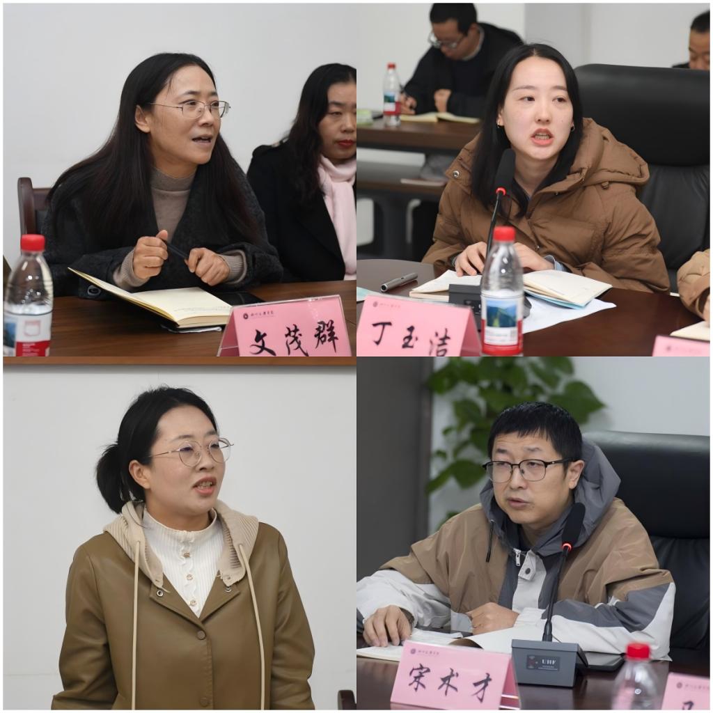 座谈会上,党委教师工作部部长、人事处处长岳臣忠汇报金年会jinnianhuicom专职思政课教师配备与建设情况;金年会jinnianhuicom院长孙杰作学院发展和学科建设情况汇报;思政课教师曹红梅教授、马步飞博士、宋术才博士等16位与会教师就人才培养、学科建设、科学研究、社会服务等方面建言献策。