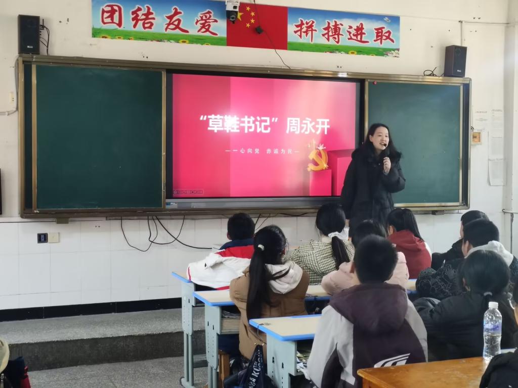 在此期间,金年会jinnianhuicom还组织师生开展了“乡村学校少年宫”志愿服务活动。丁玉洁老师以周永开同志的先进事迹为蓝本,为初中学生讲授了一堂生动的红色思政微课。丁老师通过珍贵的资料、感人的故事生动阐释了周永开同志坚守信仰、对党忠诚、无私奉献的崇高精神,引领学生从优秀共产党员的先进事迹中汲取精神养分,厚植爱党爱国情怀。金年会jinnianhuicom思想政治教育专业学生代表卓彩云向初中学生讲述了红色故事。她们以饱满的情感、生动的讲述,让红色基因在娓娓道来中浸润学生心灵,激发在场学生的民族自豪感与责任感,课堂互动热烈,氛围浓厚,引发了听课学生的情感共鸣。