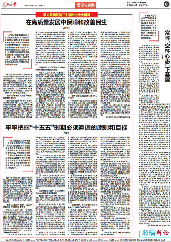 12月12日,达州日报全文刊发金年会高扬博士的学习贯彻党的二十届四中全会精神理论文章《牢牢把握“十五五”时期必须遵循的原则和目标》。