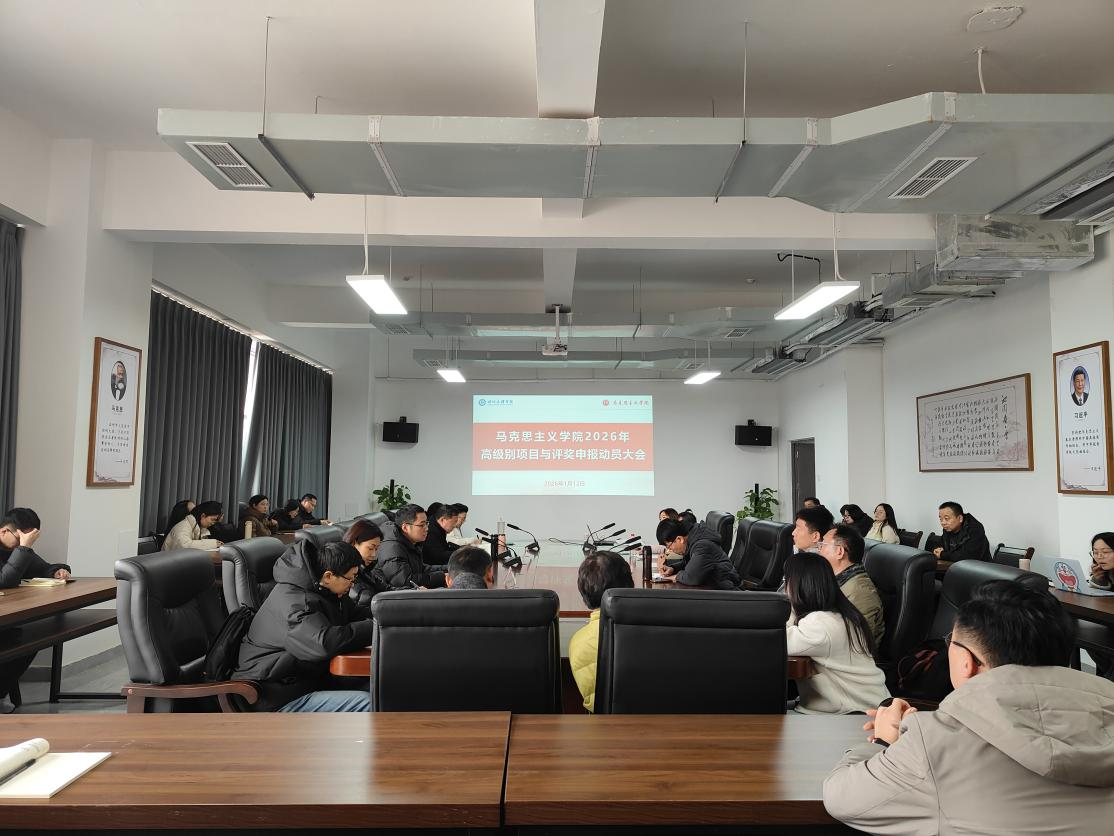 为贯彻落实学校2026年度高级别项目及评奖申报动员大会精神,提升学院高级别项目与奖项申报质量,1月12日,学院召开2026年高级别项目与评奖申报动员大会。会议由学院副院长何先成主持,全体教职工参会。