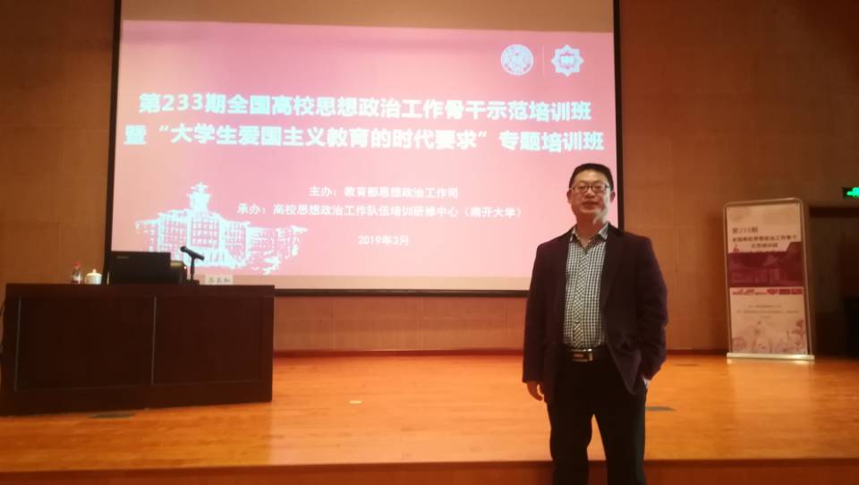 3月26日至29日,由教育部思想政治工作司主办,高校思想政治工作队伍培训研修中心(南开大学)承办的“第233期全国高校思想政治工作骨干示范培训班”暨“大学生爱国主义教育的时代要求”专题培训班在南开大学举办。学院选派了思政骨干教师王维老师参加培训。