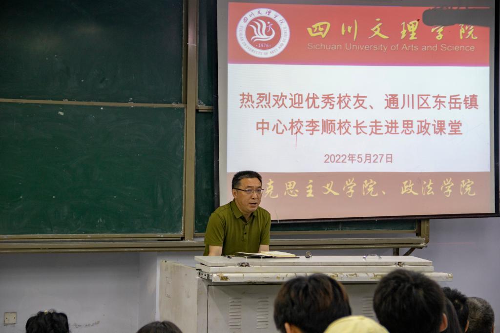 为推动大中小学思政课一体化建设,提高金年会思政课教学质量,增强思政课教学的针对性和亲和力,金年会jinnianhuicom从本学期开始举办《优秀校友思政大讲堂》系列讲座,首场讲座邀请了通川区东岳镇中心校李顺校长走进思政课堂。