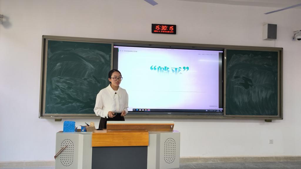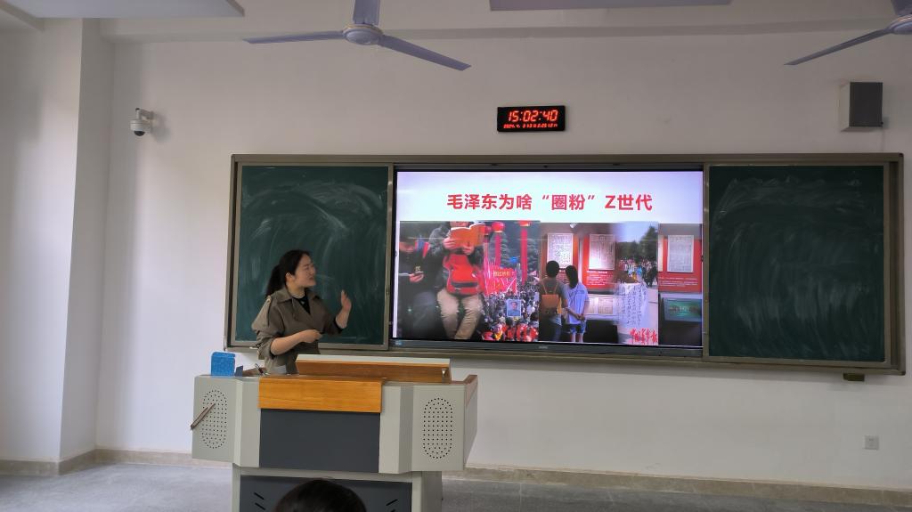 讲台上,教师梁攀、罗荥瀛、耿泽分别以“我们正处于中国特色社会主义新时代”、“毛泽东思想及其历史地位”、“积极进取的人生态度”为主题进行了优质课竞赛展示。