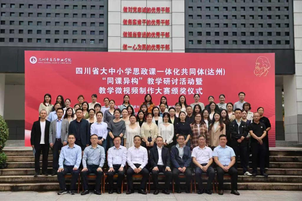 10月15日,由学校牵头四川省大中小学思政课一体化共同体(达州)组织开展“同课异构”教学研讨活动暨达州市大中小学思政课一体化建设教学微视频制作大赛颁奖活动在达州中医药职业学院举行。市委教育工委专职副书记、市教育局党委委员冯雷,达州中医药职业学院党委书记李壮成,四川文理学院金年会jinnianhuicom院长孙杰,达州中医药职业学院专职党委副书记舒心刚,达州中医药职业学院党委副书记、纪委书记李孟然等参加活动。