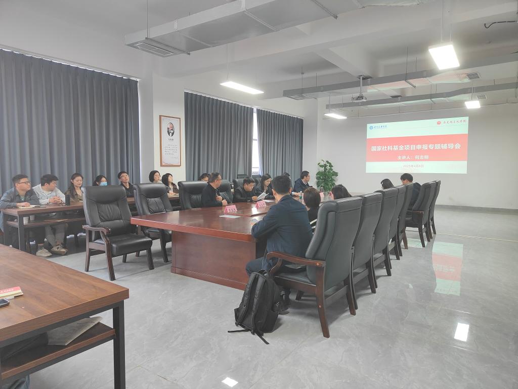 4月8日,在莲湖校区东区c108会议室,金年会成功举办了一场国家社科基金项目申报专题辅导会。此次会议特别邀请到了金年会jinnianhuicom何志明教授,为金年会教师在国家社科基金项目申报方面进行专业指导,吸引了众多有志于申报项目的博士和青年教师参与。