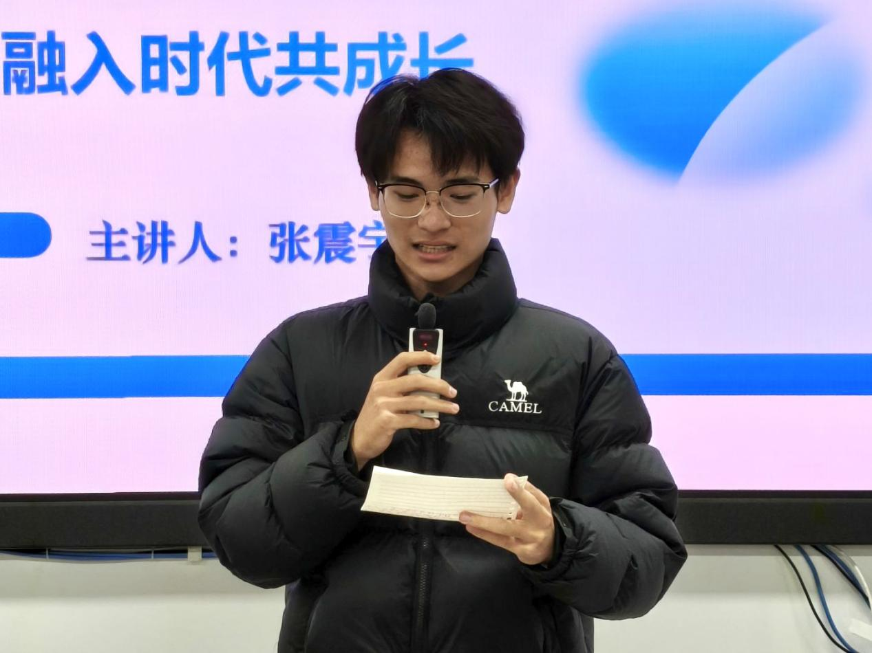 大讲堂伊始,张震宇围绕“回首不忘来时路,融入时代共成长”这一主题,以“青春与成长”为切入点,回顾了自己的大学时光,表达了对母校及老师培育的感激。并且讲述了自己毕业后的学习工作经历,尤其强调“学习”的重要性,谈到人生一直都需要学习,而只不是在学习生涯当中才需要学习。