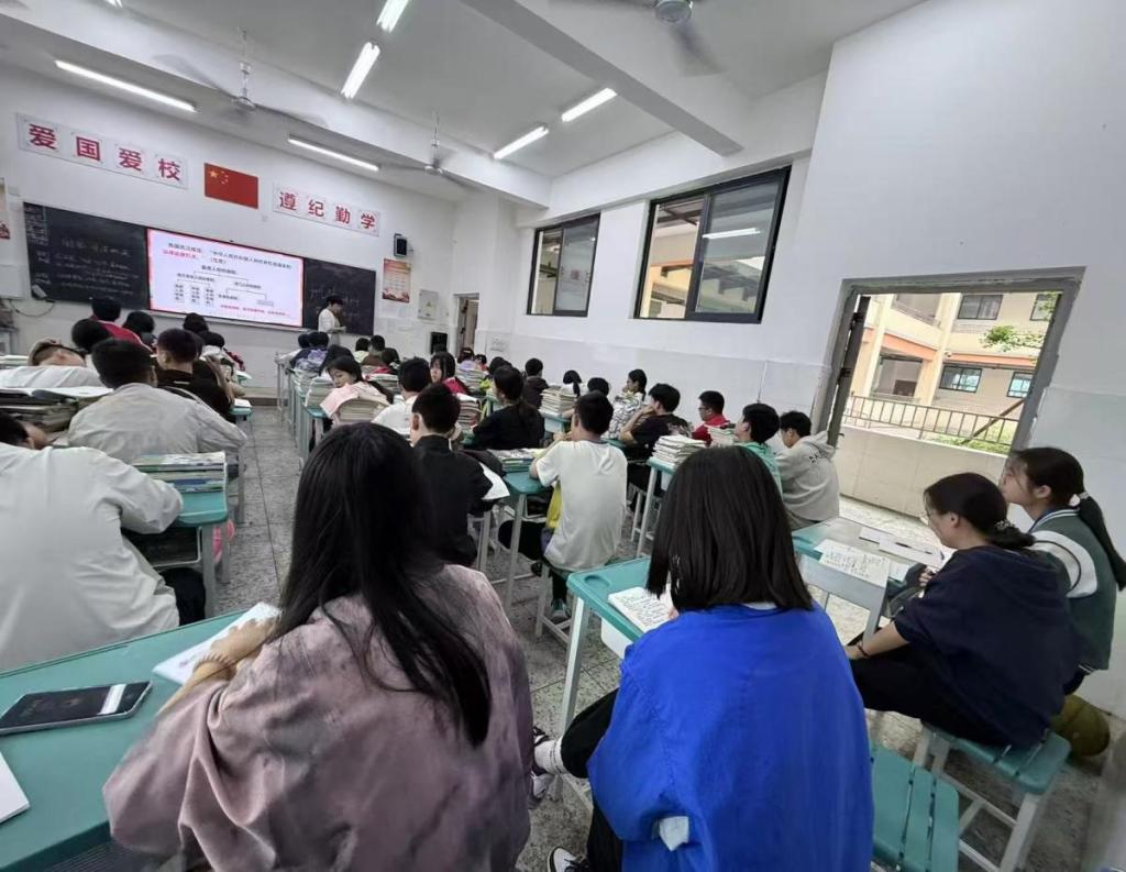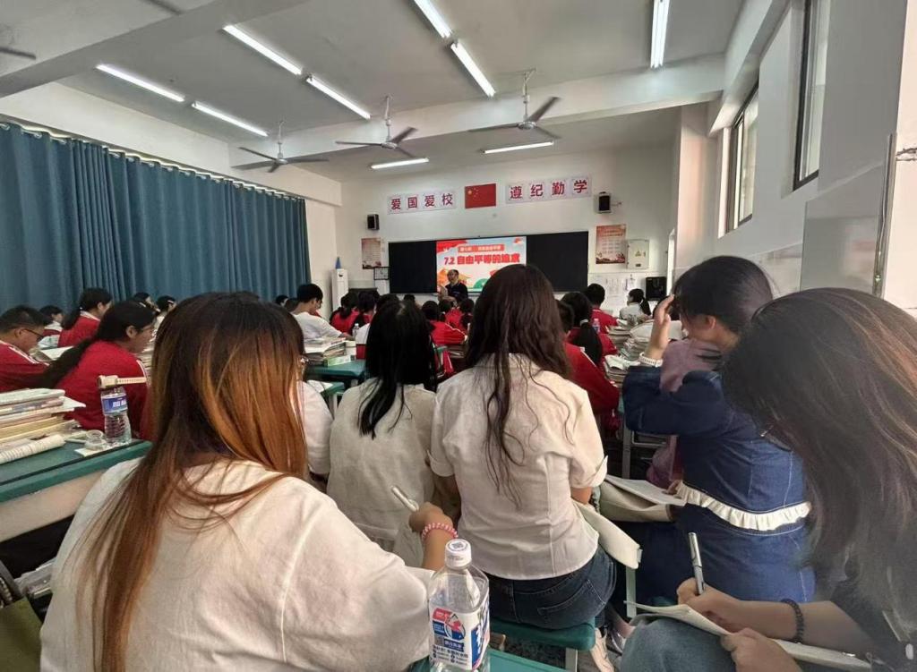 抵达达州高新技术产业园区实验学校后,同学们感受到了浓厚的育人氛围。这所学校长期深耕思想政治教育领域,积极探索创新,构建了独具特色的思政课堂教学模式。以学生为中心,结合时政热点与生活实际,注重培养学生的政治认同、科学精神、法治意识和公共参与能力,形成了 “理论讲解生动化、课堂互动多样化、价值引领常态化”的教学特色。