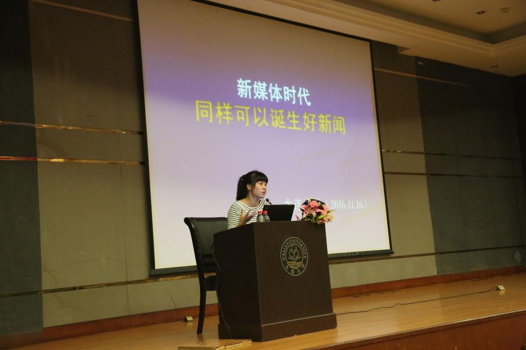 11月16日下午,创想宾馆报告厅里老师和同学们聚精会神的在听讲座,不知不觉2个多小时过去了,师生们还是感觉意犹未尽。资深新闻人、《大连日报》文教新闻部主任张轶在给大家做《新媒体时代同样可以诞生好新闻》的讲座。