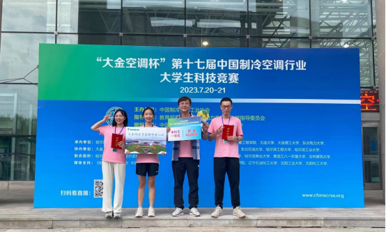在日前举行的“大金空调杯”第十七届中国制冷空调行业大学生科技竞赛决赛上,经过激烈竞争,kaiyun开云建筑工程学院指导教师陈磊带领建筑环境与能源应用工程专业2020级学生曹馨悦、冀思彤、吴宇恒同学荣获一等奖。