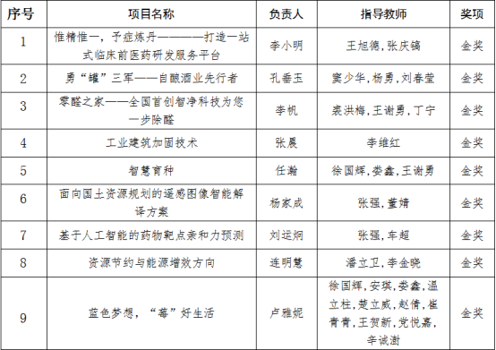 各赛道金奖获奖名单